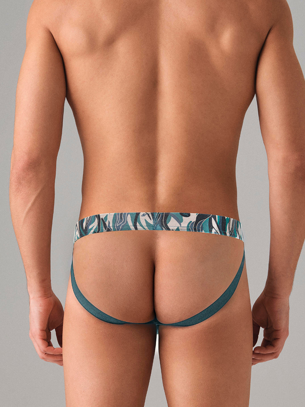 Описание: Мужские джоки с абстрактным цветным принтом в изумрудно-бирюзовых тонах.