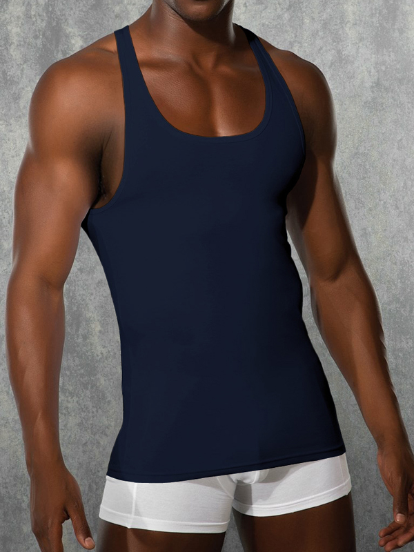 Описание: Мужская майка тёмно-синего цвета на тонких лямках для ежедневного использования от бренда «Doreanse».