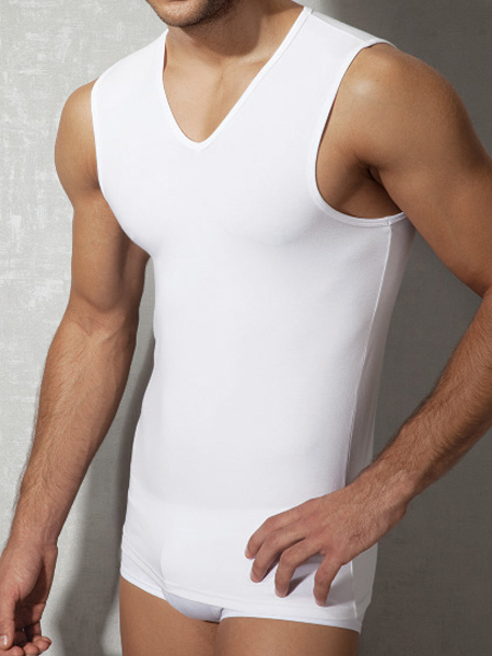 Описание: Повседневная майка-безрукавка с V-образным вырезом. Идеальное сочетание натуральных волокон (хлопок + модал) и лайкры обеспечивает максимум комфорта как для повседневного ношения, так и для занятий спортом.