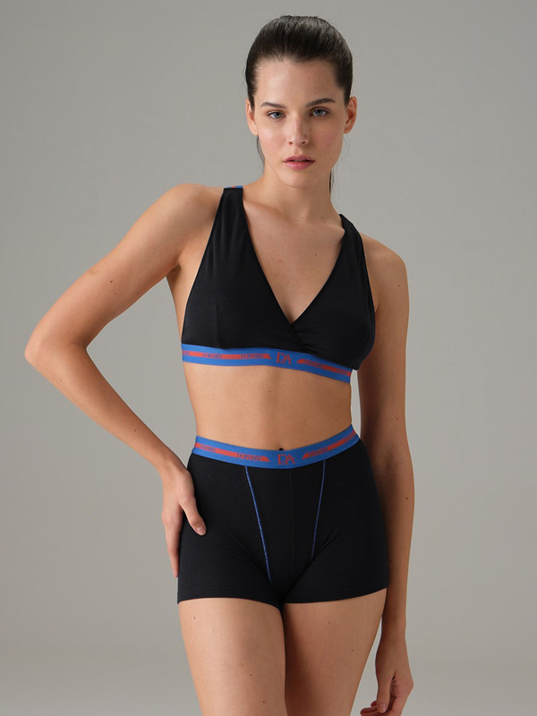 Описание: Женские трусы-шортики чёрного цвета в спортивном стиле с высокой посадкой из удивительно мягкого и эластичного натурального материала - микромодала с фактурой в мелкий рубчик.