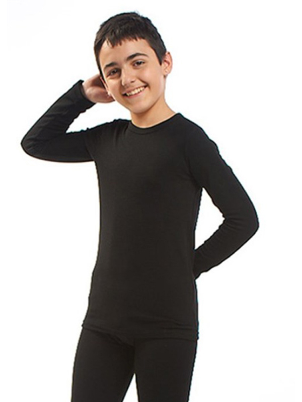 Детская термо-футболка чёрного цвета с длинным рукавом-реглан для мальчиков и девочек.