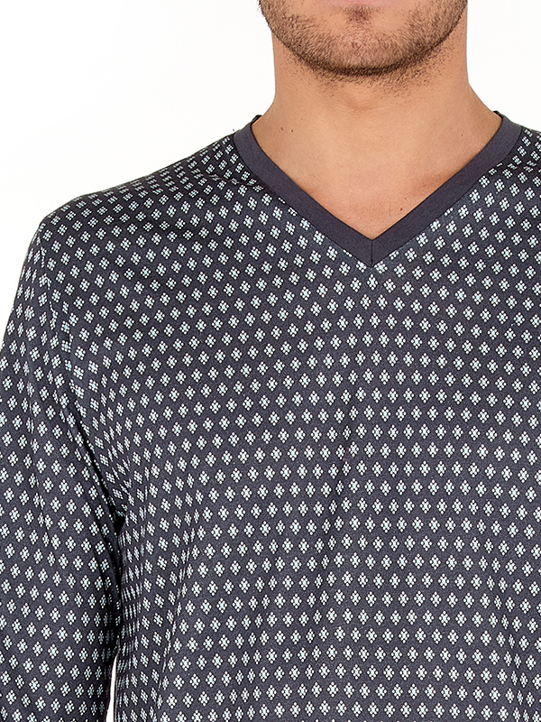 Описание: Тонкая мужская трикотажная пижама из 100% хлопка серого цвета с геометрическим микропринтом в стиле английских классических шёлковых галстуков.