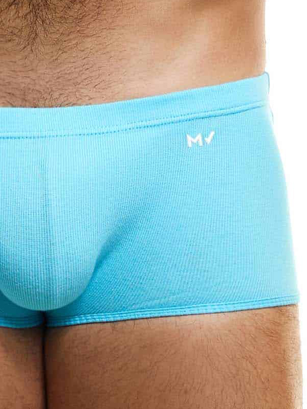 Описание: Мужские трусы-хипсы ярко-голубого (бирюзового) цвета из мягкого эластичного натурального хлопка в мелкий рубчик.