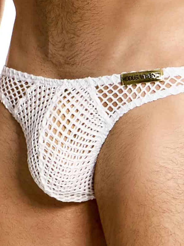 Описание: Мужские сексуальные очень откровенные, и даже немного провокационные трусы-слипы от греческого бренда «Modus Vivendi» белого цвета из крупной эластичной сеточки.