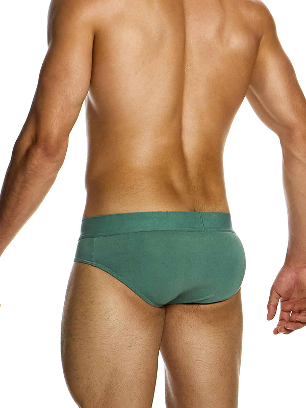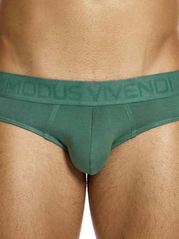 Описание: Классические мужские трусы-брифы цвета хаки с изумрудным оттнком от греческого бренда «Modus Vivendi» из мягкого и эластичного экологически чистого бамбукового волокна.